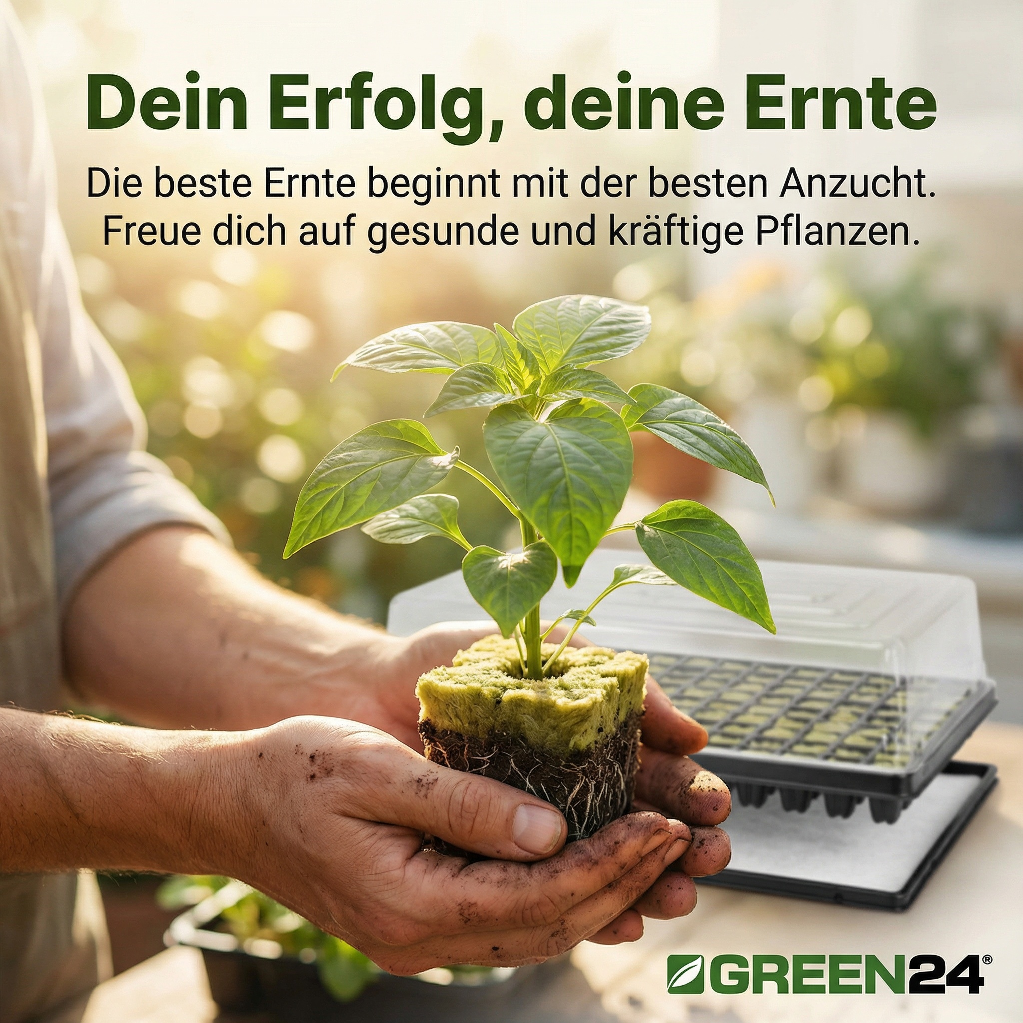 Steinwolle bietet eine stabile und unterstützende Unterlage für die Wurzeln der Pflanzen. Dies fördert ein gesundes und schnelles Wurzelwachstum, was wiederum die Gesundheit und das Wachstum der gesamten Pflanze positiv beeinflusst.