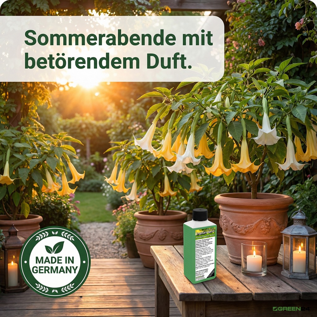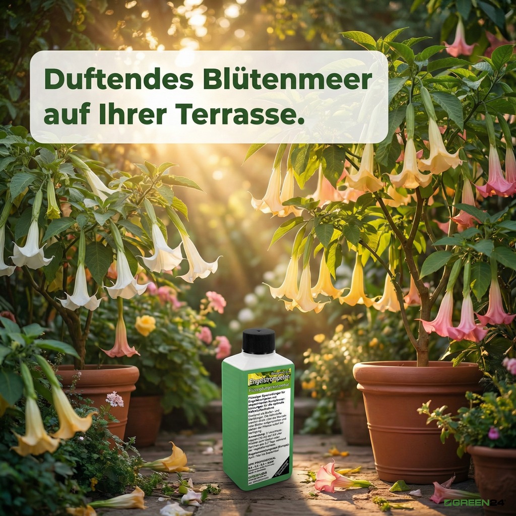 Die Engelstrompete, eine Königin unter den Kübelpflanzen, verzaubert mit ihren opulenten, duftenden Blütenkelchen jeden Garten und jede Terrasse. Sie ist eine Pflanze, die nicht nur wächst, sondern eine wahre Performance abliefert – eine Explosion aus tropischer Üppigkeit und betörendem Parfum. Doch diese Diva unter den Pflanzen ist auch eine Hungerkünstlerin. Um ihre volle Pracht entfalten zu können, verlangt sie nach einer außergewöhnlich reichhaltigen und präzise abgestimmten Ernährung. Mit dem GREEN24 Engelstrompeten-Dünger geben Sie ihr genau das, was sie für ihren großen Auftritt braucht.