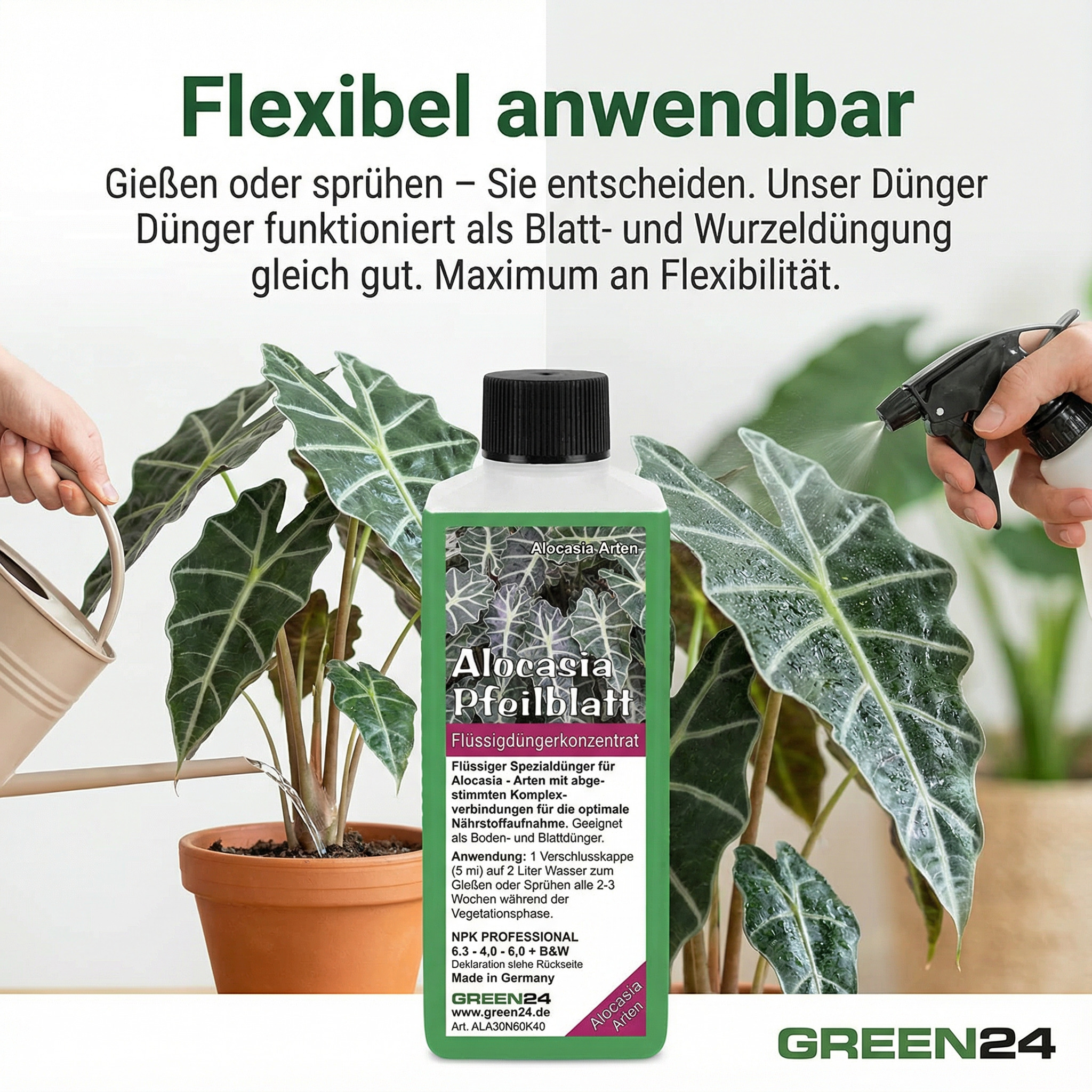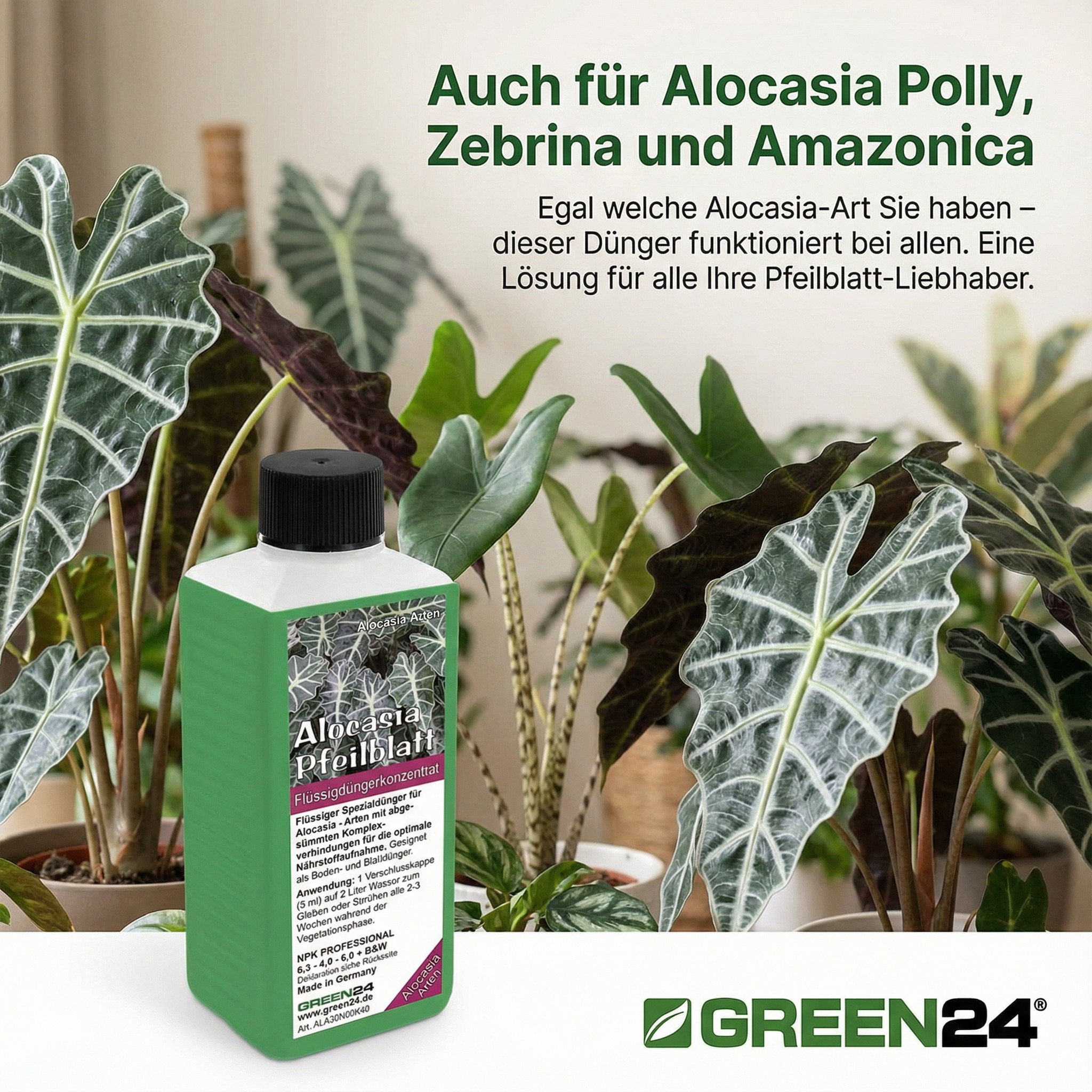 Gönnen Sie Ihren Pfeilblättern die passgenaue Ernährung. Jetzt GREEN24 Alocasia Dünger bestellen – schnelle Lieferung in 1–3 Werktagen.