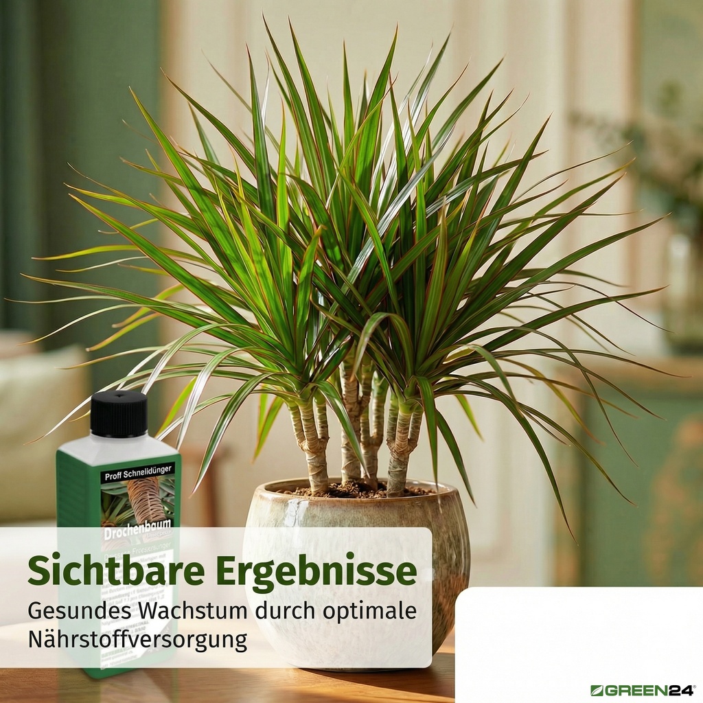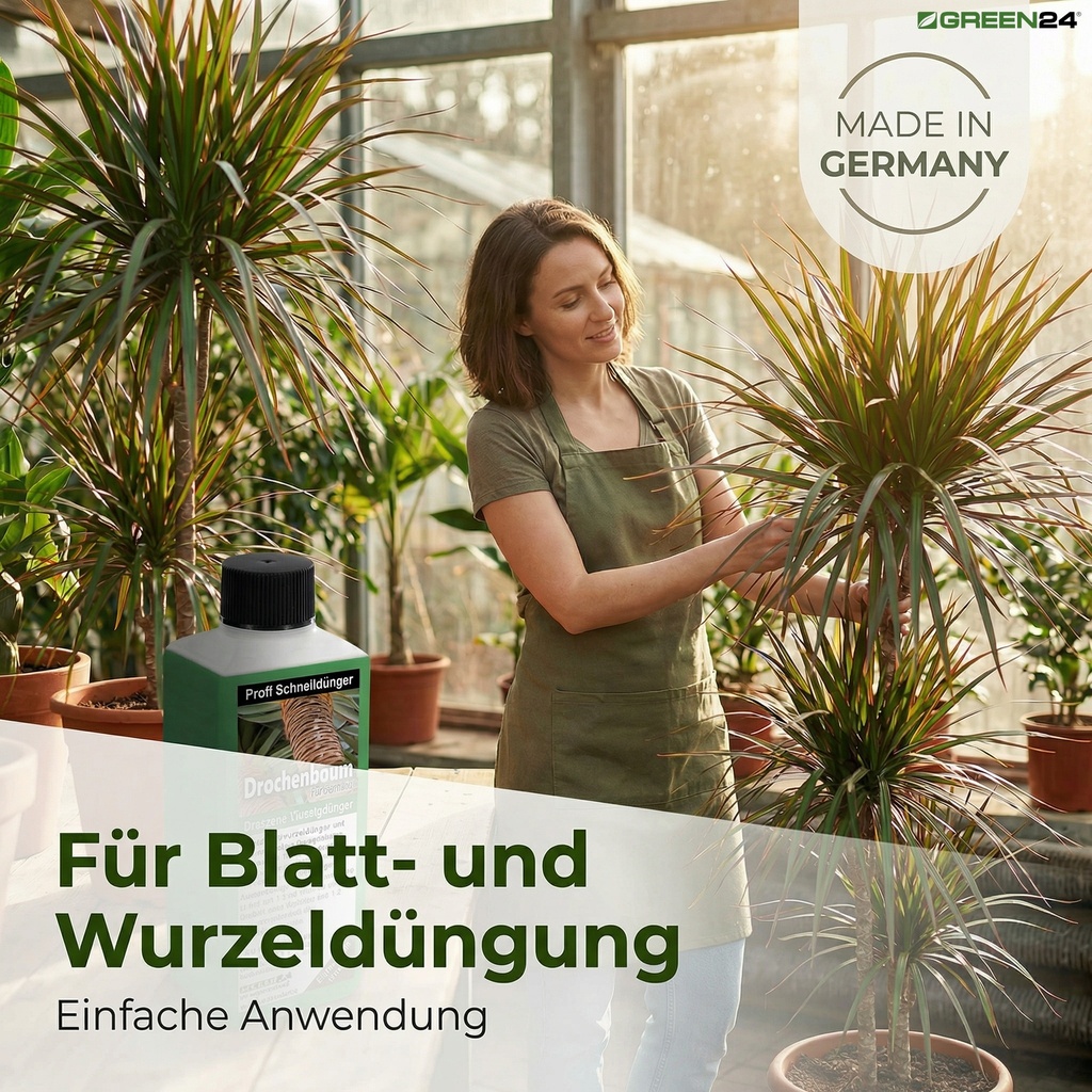 Wir bei GREEN24 haben unsere ganze Expertise als Gärtner und Pflanzenexperten in die Entwicklung dieses Spezialdüngers gesteckt. Das Ergebnis ist ein HIGH-TECH NPK-Flüssigdünger, der exakt auf die Bedürfnisse von Drachenbäumen zugeschnitten ist. Er versorgt Ihre Pflanze nicht nur mit den wichtigsten Hauptnährstoffen, sondern geht mit seiner innovativen Formulierung einen wichtigen Schritt weiter.