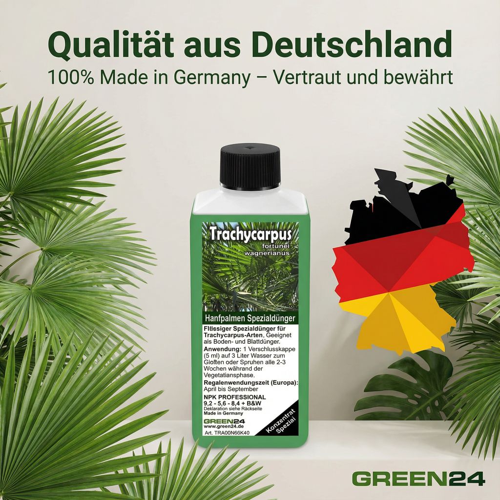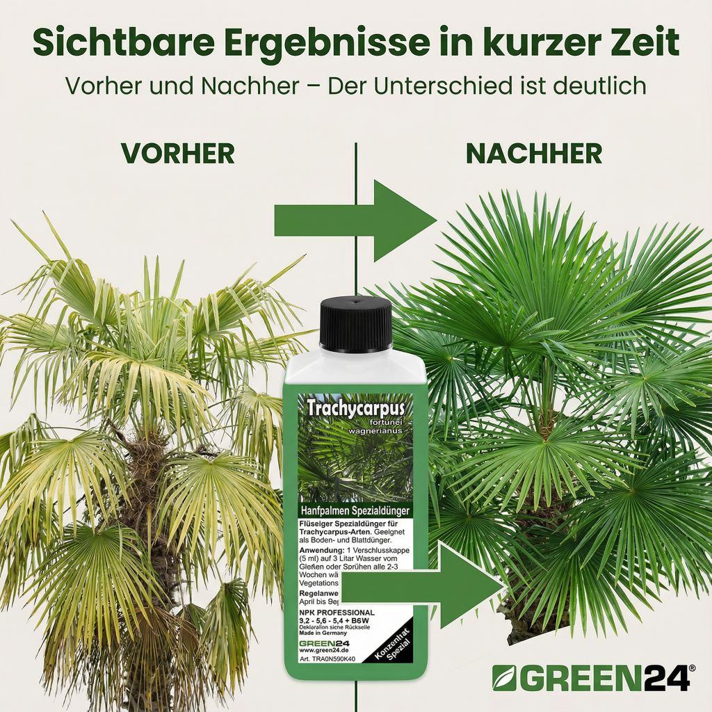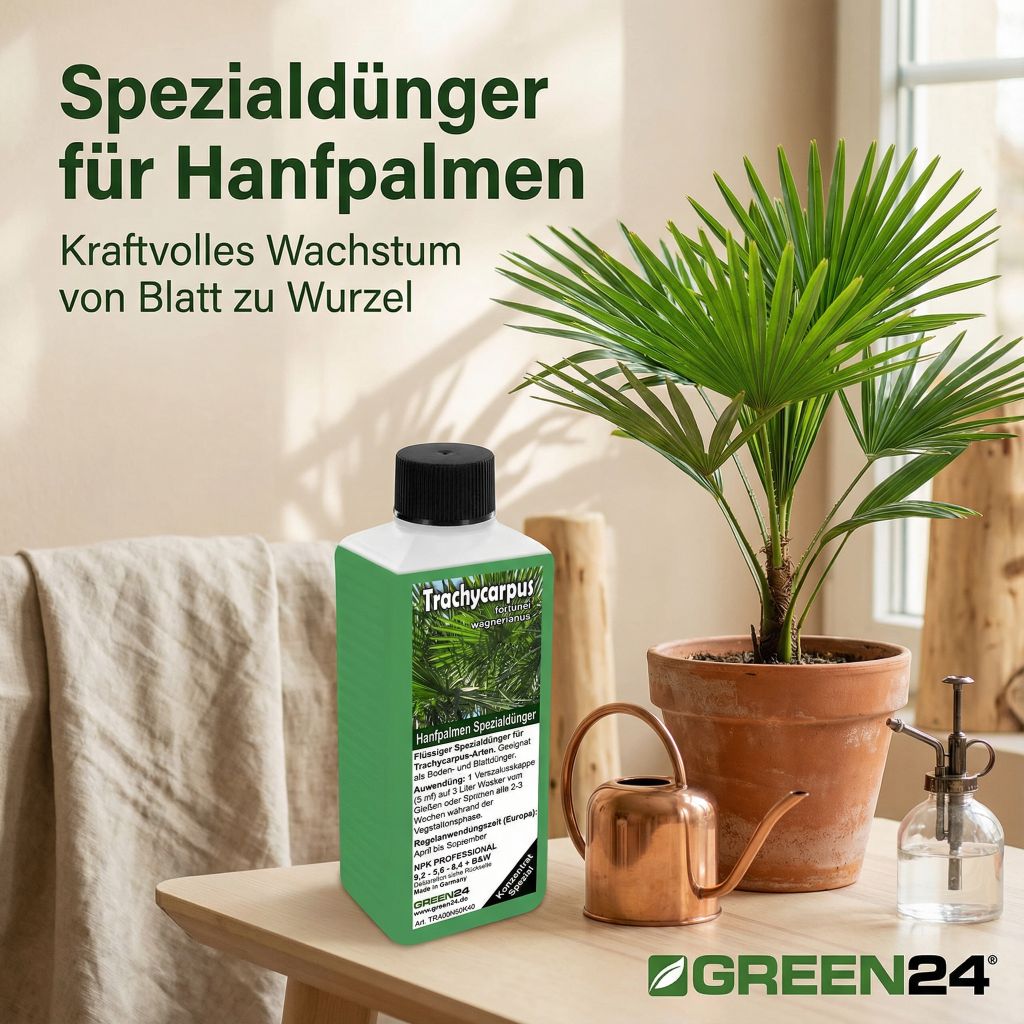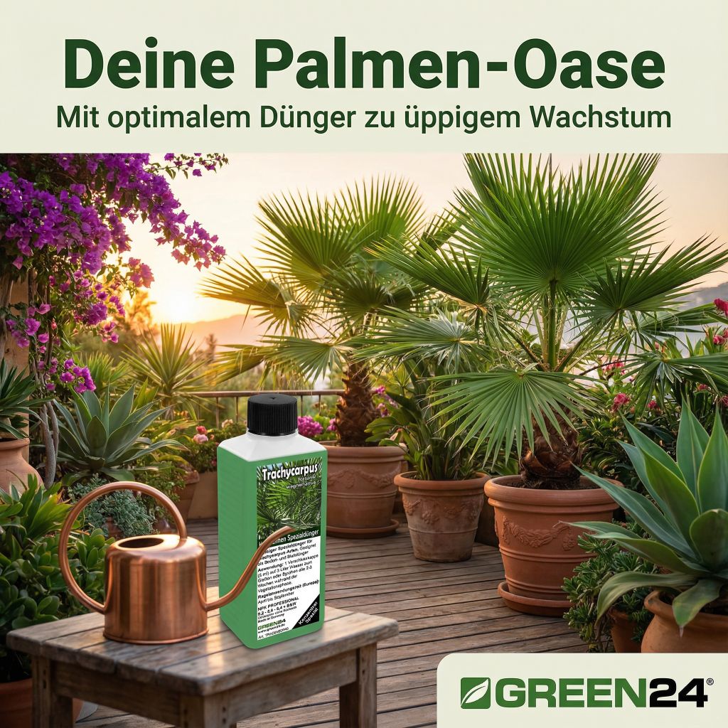 Wir lieben Palmen und die Palmen lieben den Dünger. Sowohl über Giesswasser als auch zur Besprühung der Blätter nutzbar. Die Palmennahrung beschleunigt das Wachstum ohne die natürliche Entwicklung der Pflanzen zu beeinflussen. Die Wedel schießen nur so aus der Palme ( im übertragenen Sinne ). Das besprühen der Blätter mit Regenwasser und Dünger sind genauso wichtig wie temperiertes Giesswasser mit Dünger. Kein Wasser direkt aus dem Hahn nutzen. Aber das mögen die wenigsten Pflanzen.