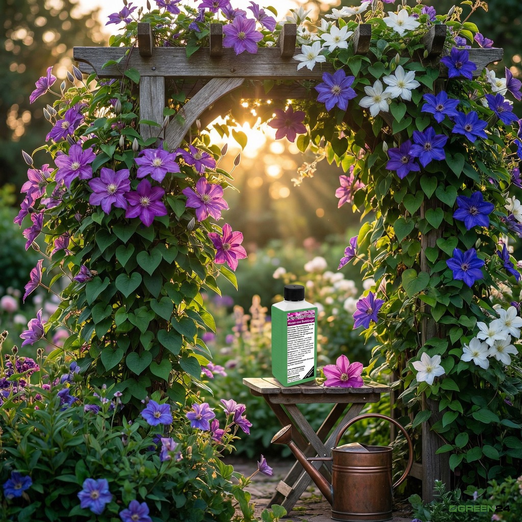 Stellen Sie sich vor, wie eine Kaskade aus leuchtenden, sternförmigen Blüten Ihre Hauswand, Ihre Pergola oder Ihren Balkon in ein romantisches Paradies verwandelt. Mit dem GREEN24 Clematis Dünger wird dieser Traum zur Wirklichkeit. Wir haben eine Nährstoff-Formel entwickelt, die speziell auf die Bedürfnisse dieser eleganten Kletterköniginnen abgestimmt ist – für eine Blütenpracht, die nicht nur Sie, sondern auch Ihre Nachbarn zum Staunen bringen wird.