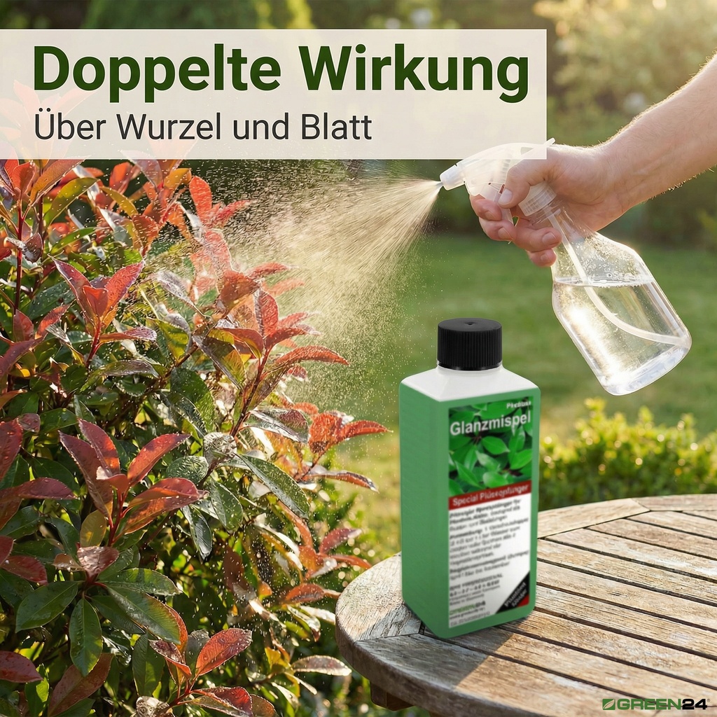 Die glänzenden, ledrigen Photinia-Blätter sind hervorragend für Sprühdüngung geeignet und ermöglichen schnelle Nährstoffaufnahme für intensivere Rotfärbung.