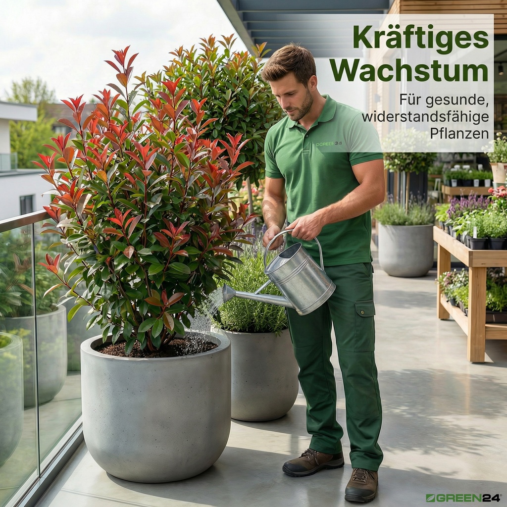 Glanzmispeln (Photinia) gehören zu den spektakulärsten Heckenpflanzen und begeistern mit ihrem charakteristischen roten Austrieb und den glänzenden, immergrünen Blättern. Als schnellwachsende, schnittverträgliche Gehölze sind sie die perfekte Wahl für moderne Gartengestaltung und bieten ganzjährig attraktive Farbenspiele. Als anspruchsvolle Gehölze benötigen sie jedoch eine speziell abgestimmte Nährstoffversorgung, um ihre volle Farbpracht zu entfalten. Unser Photinia-Spezialdünger ist genau auf diese besonderen Bedürfnisse abgestimmt.