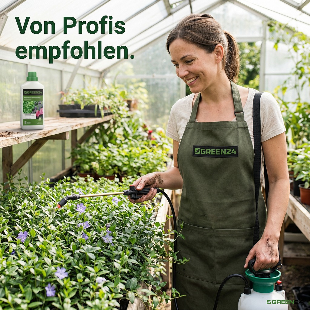 Die Anwendung dieses Düngerkonzentrats ist denkbar einfach. Mischen Sie lediglich eine Verschlusskappe (5 ml) auf 1,5 Liter Gießwasser. Diese Lösung kann alle 3 bis 4 Wochen während der Vegetationsphase von Mai bis September angewendet werden. Dank der innovativen Zusammensetzung eignet sich der Dünger sowohl für die klassische Wurzeldüngung als auch für die Blattdüngung. Bei der Blattdüngung sorgen spezielle Haft- und Benetzungsmittel dafür, dass die Nährstoffe optimal auf den Blättern haften bleiben und nicht sofort vom nächsten Regen abgewaschen werden.