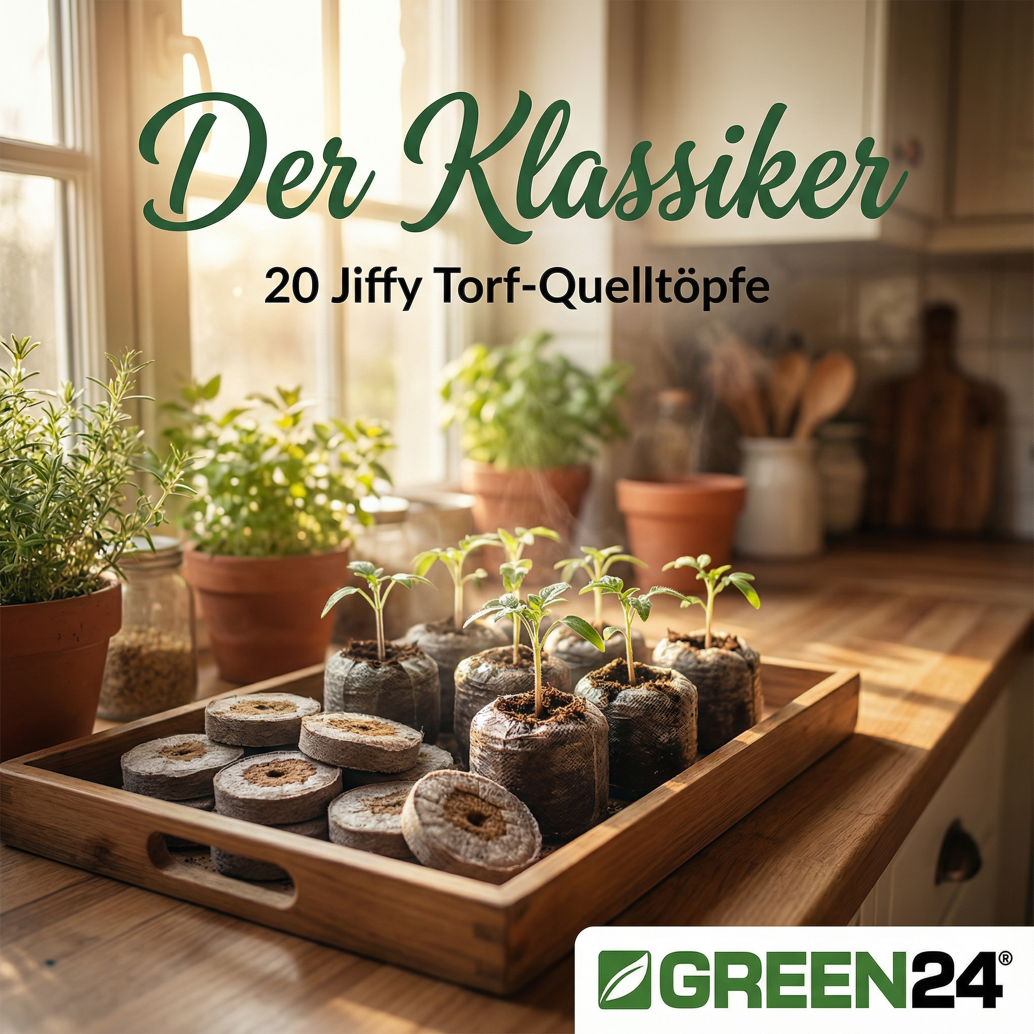 Jiffy Torfquelltöpfe haben es in sich. Die eher unscheinbare "Torftablette" entpuppt sich schnell als kleines Kraftpaket, das alles besitzt, was ein Samenkorn, ein Steckling oder Sämling braucht: Sphagnum-Weißtorf als Basis für gesundes Wachstum, Dolomit-Kalk zur Regelung des pH-Wertes, einen ausgewogenen Nährstoff-Mix, der Keimung und Wurzelbildung beschleunigt.