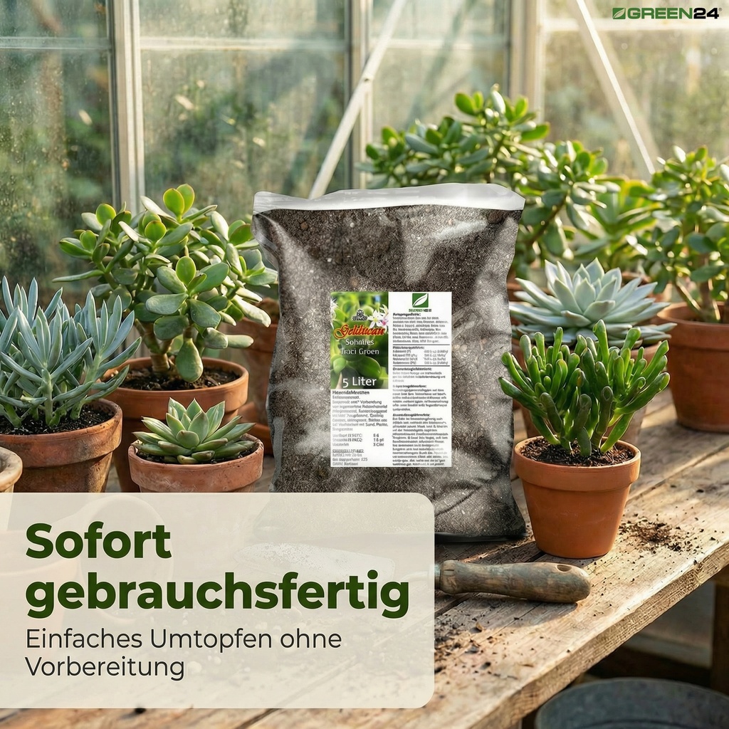 Die GREEN24 PROFI LINIE Geldbaum-Erde wurde entwickelt, um die natürlichen Bodenbedingungen der Herkunftsregionen von Crassula ovata nachzuahmen: