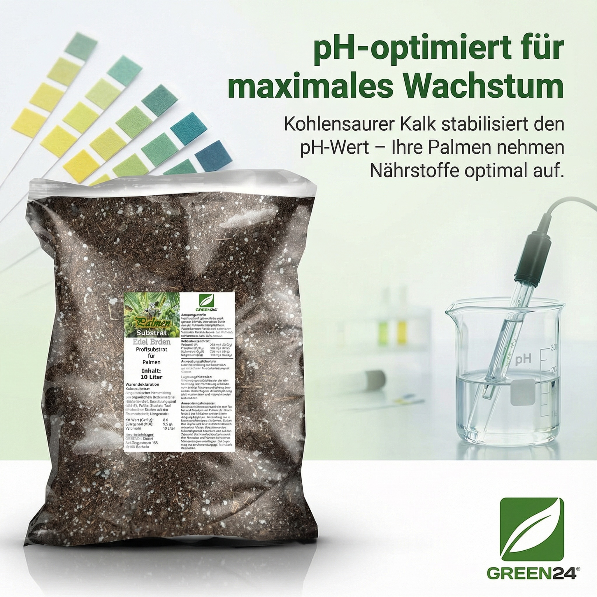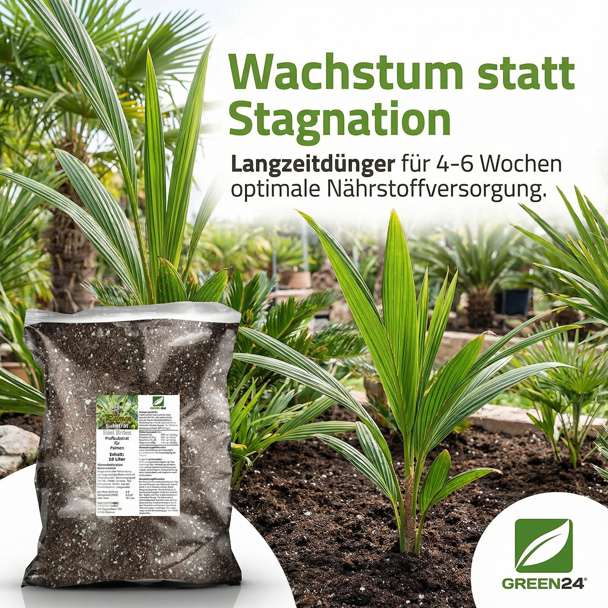 Palmen sind der Inbegriff von Exotik und verwandeln jeden Raum und Garten in eine tropische Oase. Damit diese majestätischen Pflanzen ihre volle Pracht entfalten können, benötigen sie ein Substrat, das ihren speziellen Bedürfnissen gerecht wird. Unsere GREEN24 Palmenerde ist eine frische PROFI LINIE Abfüllung und basiert auf der aktuellsten Rezeptur für professionelle Ergebnisse.