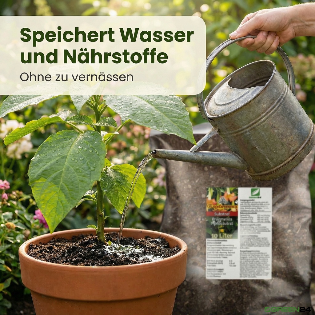 Der integrierte Naturton fungiert als intelligenter Wasserspeicher und gibt Feuchtigkeit kontinuierlich an die Wurzeln ab. Dies ist besonders wichtig für Engelstrompeten, die einen außergewöhnlich hohen Wasserbedarf haben, aber gleichzeitig sehr empfindlich auf Staunässe reagieren.