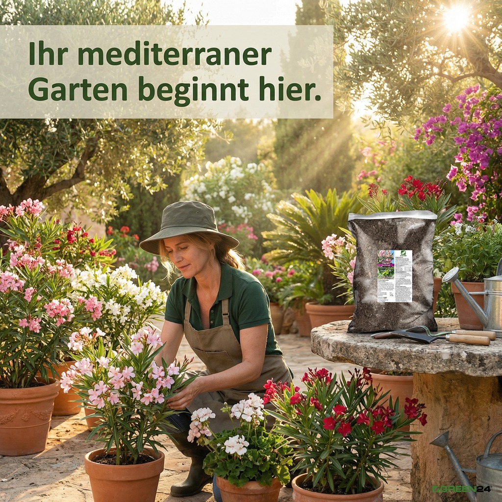 Olea europaea) stammen aus dem Mittelmeerraum, wo sie in steinigen, gut drainierten Böden mit regelmäßigen Trockenperioden wachsen. Wer diese Pflanzen in Kübeln auf Balkon oder Terrasse hält, steht vor einer echten Herausforderung: Normale Blumenerde hält zu viel Feuchtigkeit, verdichtet sich schnell und bietet weder die Struktur noch die Mineralien, die mediterrane Gewächse brauchen. Genau hier setzt das GREEN24 Oleander & Oliven Substrat an.