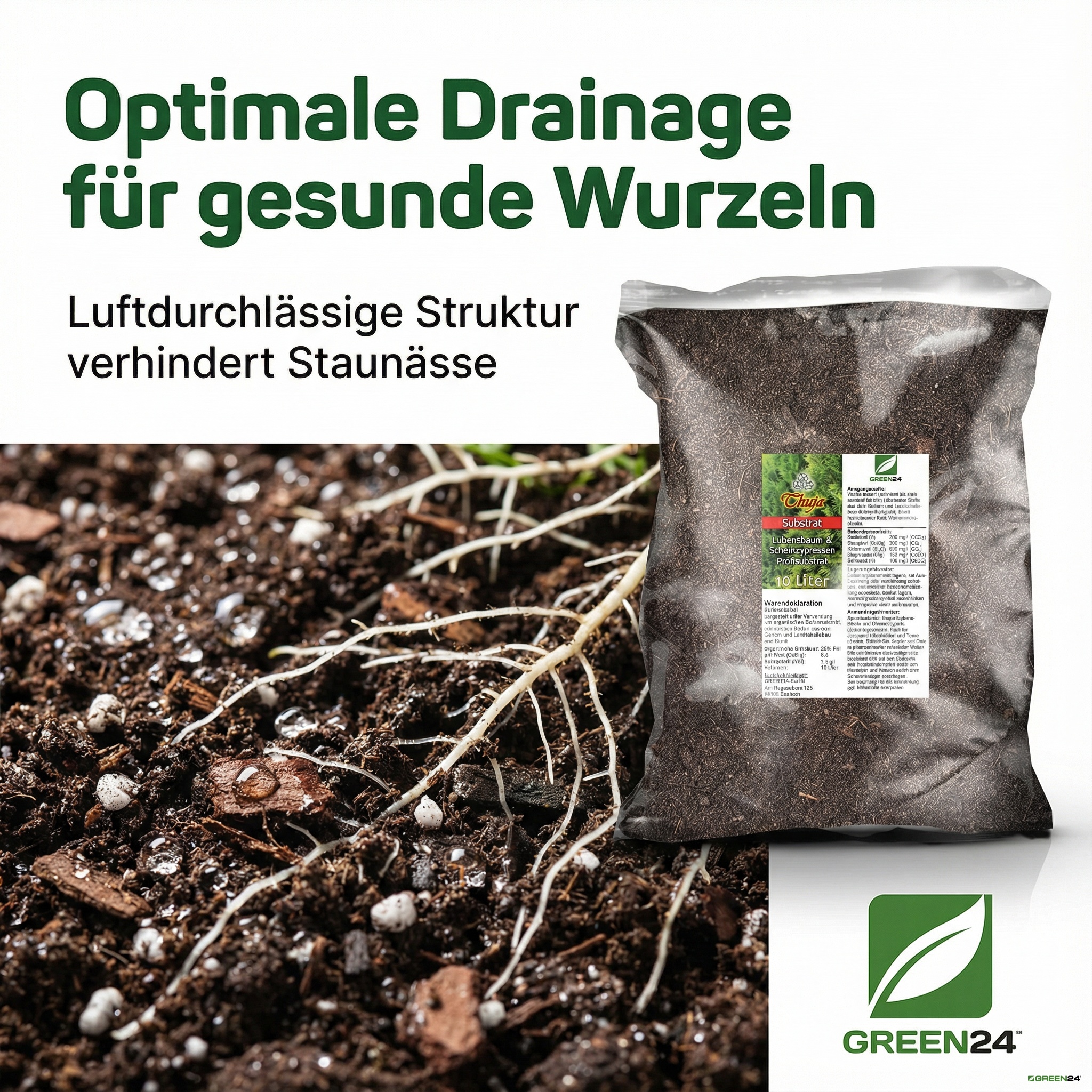 Eine dichte, immergrüne Hecke ist der Traum vieler Gartenbesitzer. Doch oft machen braune Stellen und lückiger Wuchs einen Strich durch die Rechnung. Die Ursache liegt fast immer im Boden. Thuja und Scheinzypressen sind zwar robust, reagieren aber extrem empfindlich auf "nasse Füße". Verdichtete, lehmige Gartenböden führen zu Staunässe, Sauerstoffmangel an den Wurzeln und schließlich zum Absterben ganzer Pflanzenteile. Unsere PROFI LINIE Thuja & Chamaecyparis Erde löst dieses Problem durch eine professionelle, gärtnererprobte Rezeptur, die auf maximaler Drainage und optimaler Wurzelbelüftung basiert.