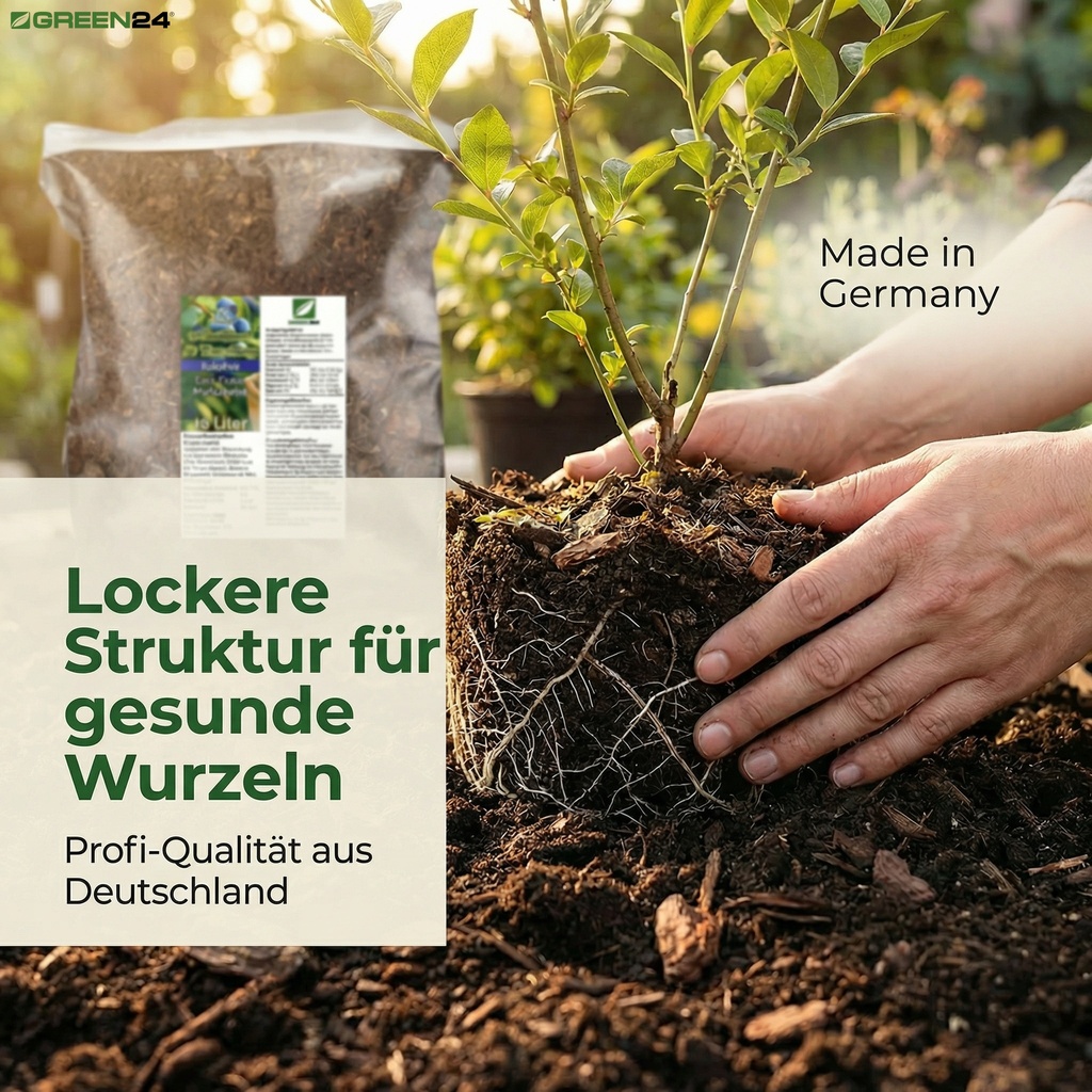 - Pflanzliche Stoffe aus der Forstwirtschaft: Sorgen für eine grobe, lockere und dauerhaft stabile Struktur. Dies ist für die feinen, oberflächennahen Wurzeln der Heidelbeere essenziell, um Staunässe zu vermeiden und eine gute Belüftung zu sichern.