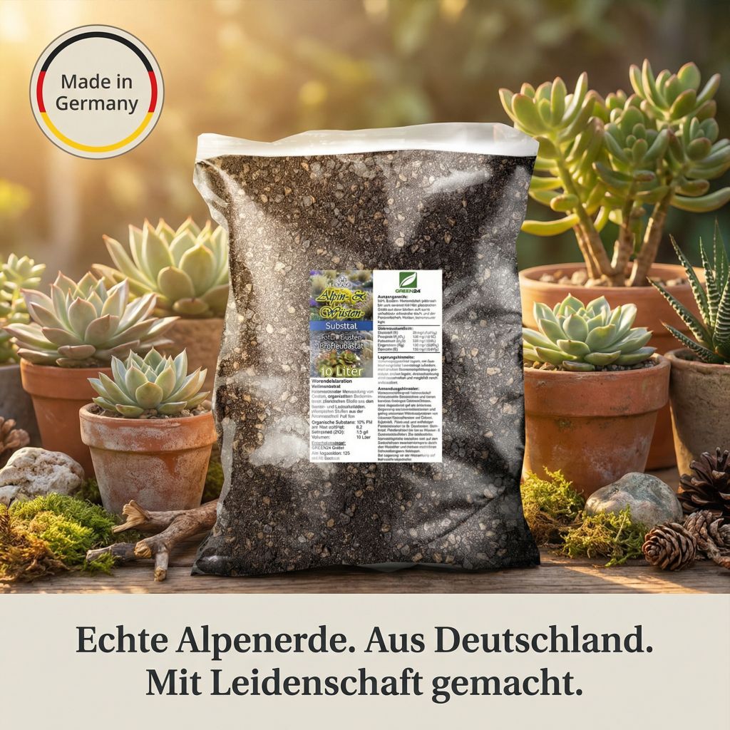 Pflanzen aus alpinen, wüstenartigen oder steppenähnlichen Regionen haben eines gemeinsam: Sie sind perfekt an extreme Bedingungen angepasst. Sie überleben auf kargen, steinigen Böden, trotzen intensiver Sonneneinstrahlung und kommen mit langen Trockenperioden zurecht. Ihr größter Feind ist nicht die Trockenheit, sondern zu viel Nässe und zu viele Nährstoffe. Eine normale, humusreiche Blumenerde wäre für sie das Todesurteil. Unsere PROFI LINIE Alpin & Wüsten Erde kehrt das Prinzip um: Mit über 60% mineralischen Anteilen wie Gestein und einem Minimum an organischen Stoffen und Nährstoffen bildet sie die natürlichen, kargen Standorte dieser Spezialisten exakt nach. Das Ergebnis: Gesunde, robuste Pflanzen, die ihre ganze Kraft in Blüten und charakteristisches Wachstum stecken, statt in weiche, anfällige Triebe.