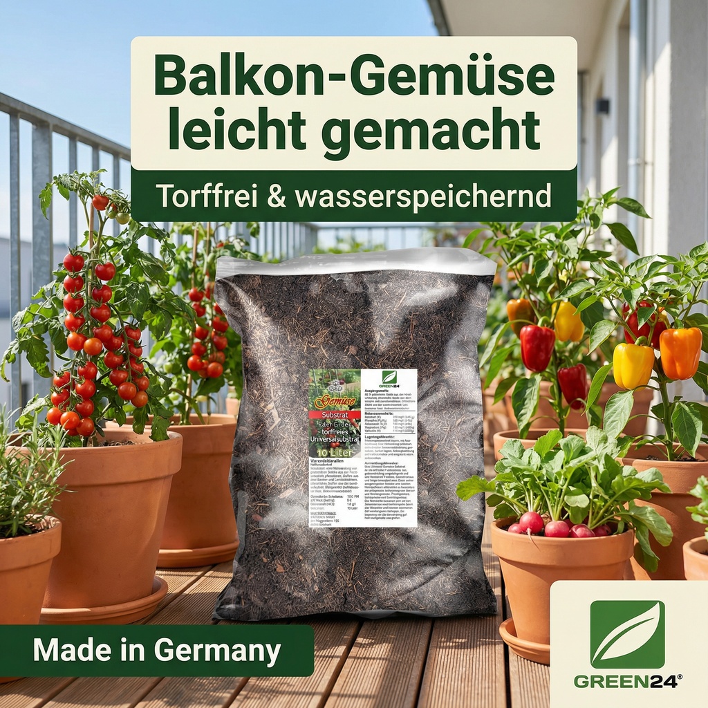 Gebrauchsfertiges, torffreies Kultursubstrat zur Pflanzung und Bodenverbesserung im gesamten Gemüsegarten. Für die meisten Gemüsearten geeignet. Bei Starkzehrern wie Kürbis, Kohl oder Starkzehrer-Tomaten wird eine Nachdüngung während der Wachstumsphase empfohlen.