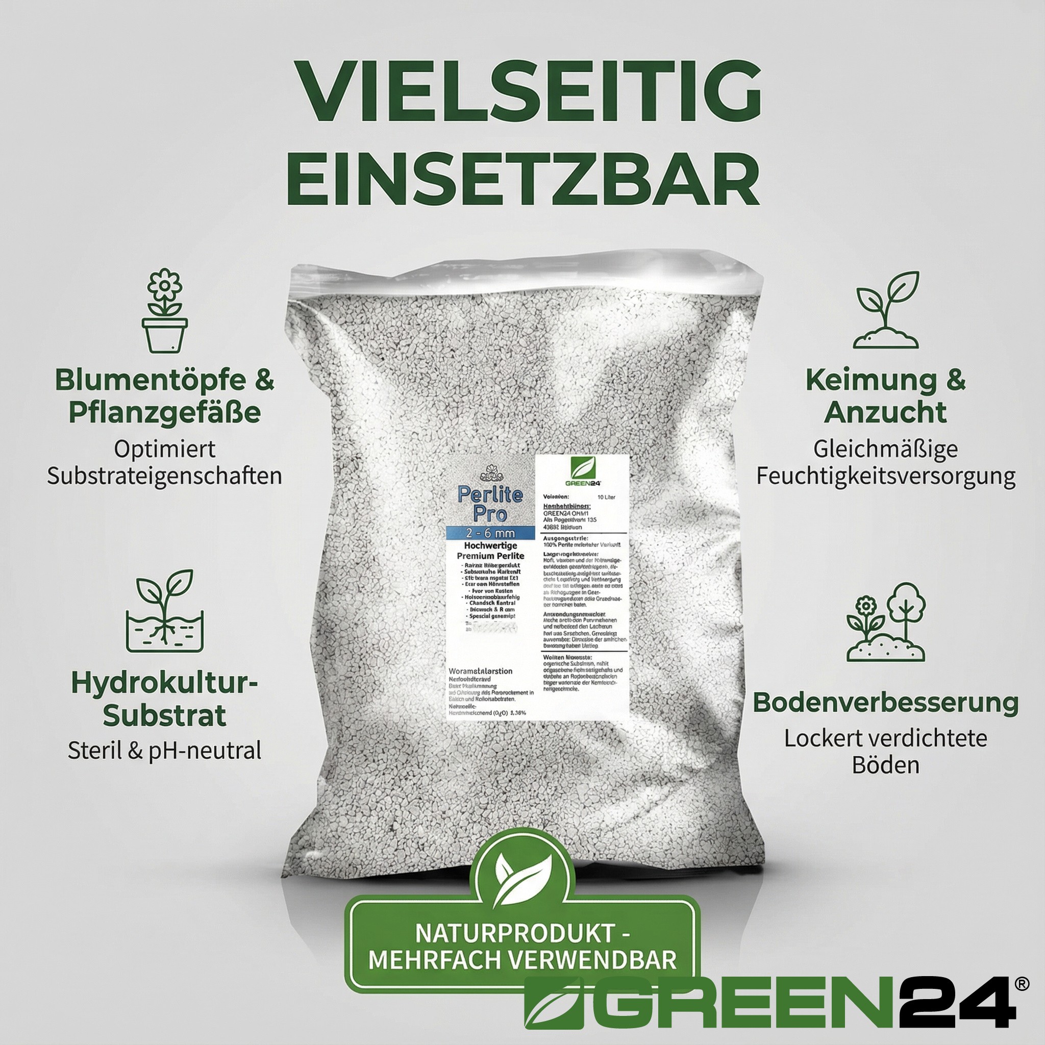 Die herausragenden Eigenschaften von GREEN24 PROFI LINIE Perlite basieren auf seiner einzigartigen physikalischen Struktur: