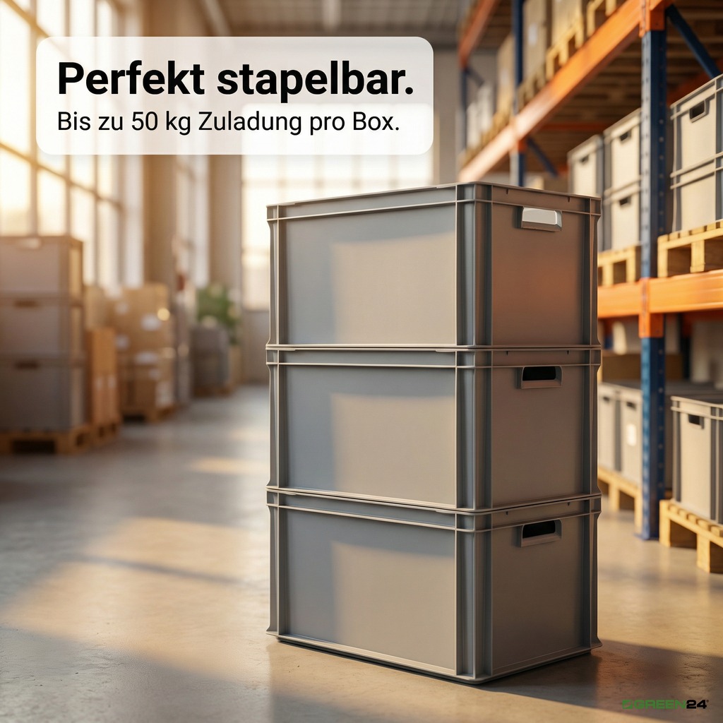 Unsere Euroboxen im Format 600 x 400 mm bieten eine hochstabile und langlebige Lösung für Lagerung, Transport und Logistik. Hergestellt aus robustem Polypropylen Copolymer (PPC), sind diese Stapelbehälter für den intensiven Einsatz in Industrie, Handwerk und im privaten Bereich konzipiert. Das Material ist lebensmittelecht, temperaturbeständig und leicht zu reinigen.