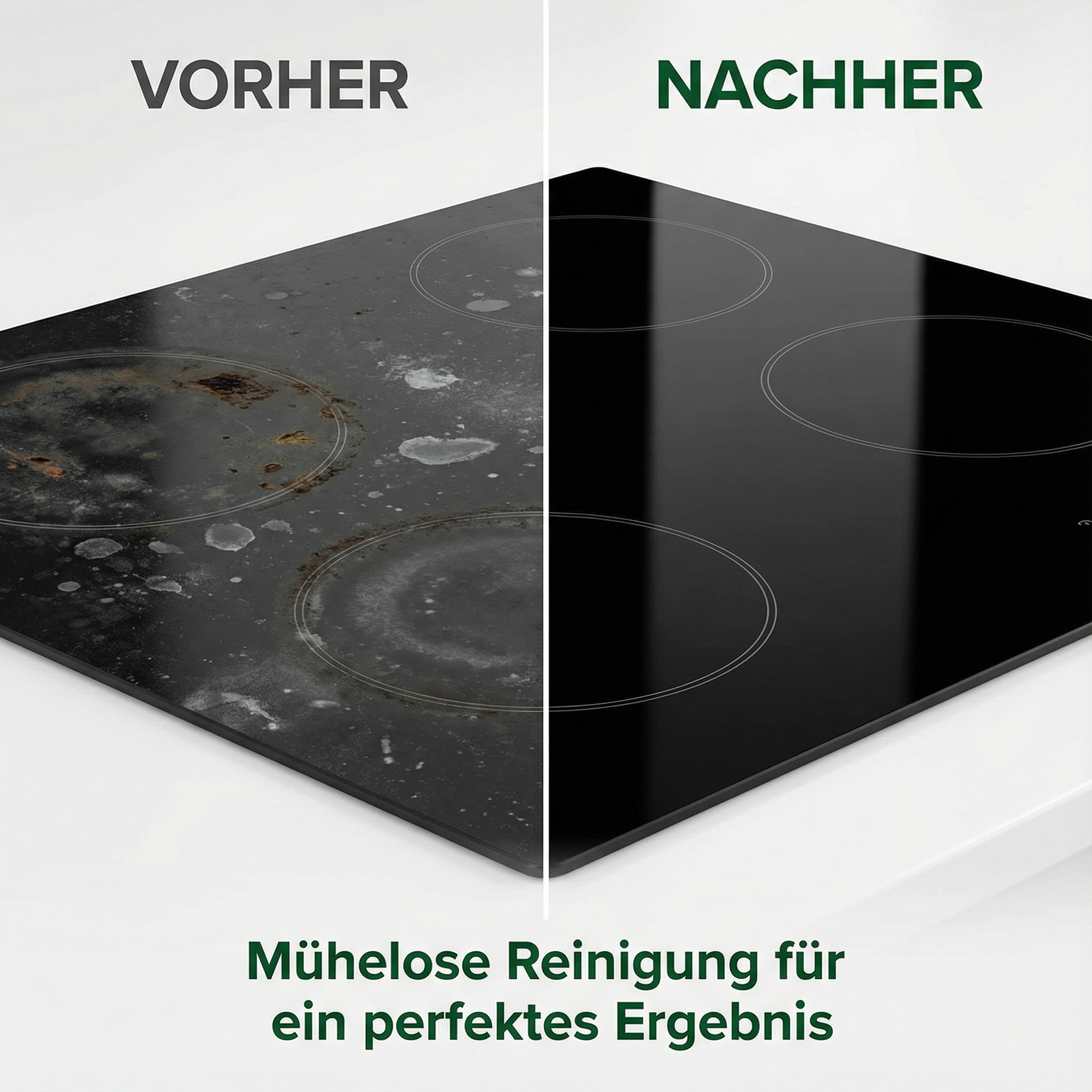 Glaskeramik-Kochfeld-Reiniger SET mit Mikrofasertuch - Reinigung und Pflege von Kochplatten / Ceranfeld / Induktionsplatten