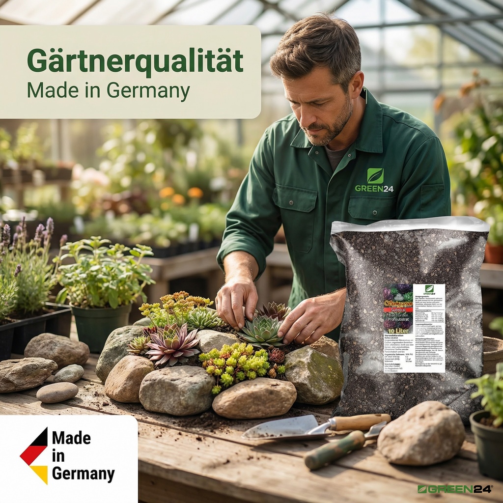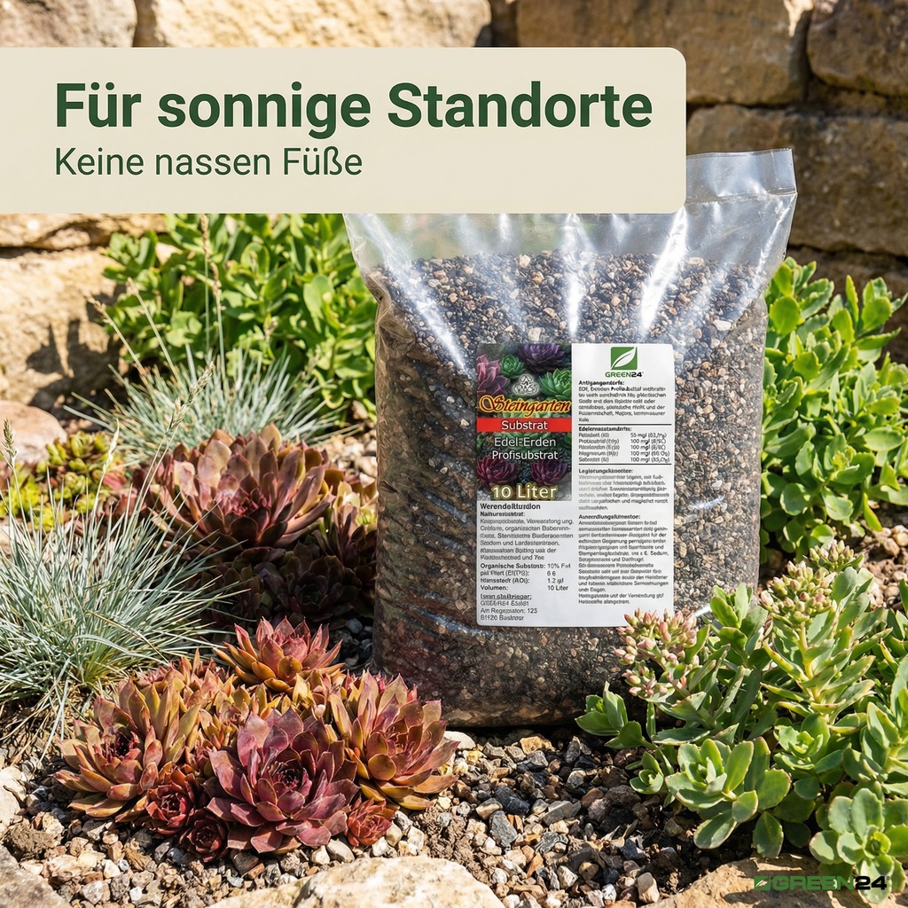 Hauswurz (Sempervivum) und Fetthennen (Sedum) sind Meister der Anpassung. In ihrer natürlichen Heimat – den Felsspalten und kargen Böden der Gebirge – haben sie gelernt, mit einem Minimum an Wasser und Nährstoffen auszukommen. Ihre sukkulenten Blätter und Rosetten sind perfekte Wasserspeicher. Eine normale, humusreiche Blumenerde wäre für diese Spezialisten tödlich, da sie zu Fäulnis führt. Unsere PROFI LINIE Steingarten-Erde simuliert exakt diese extremen, aber lebensnotwendigen Bedingungen und sorgt für gesunde, langlebige und farbenprächtige Steingartenpflanzen.